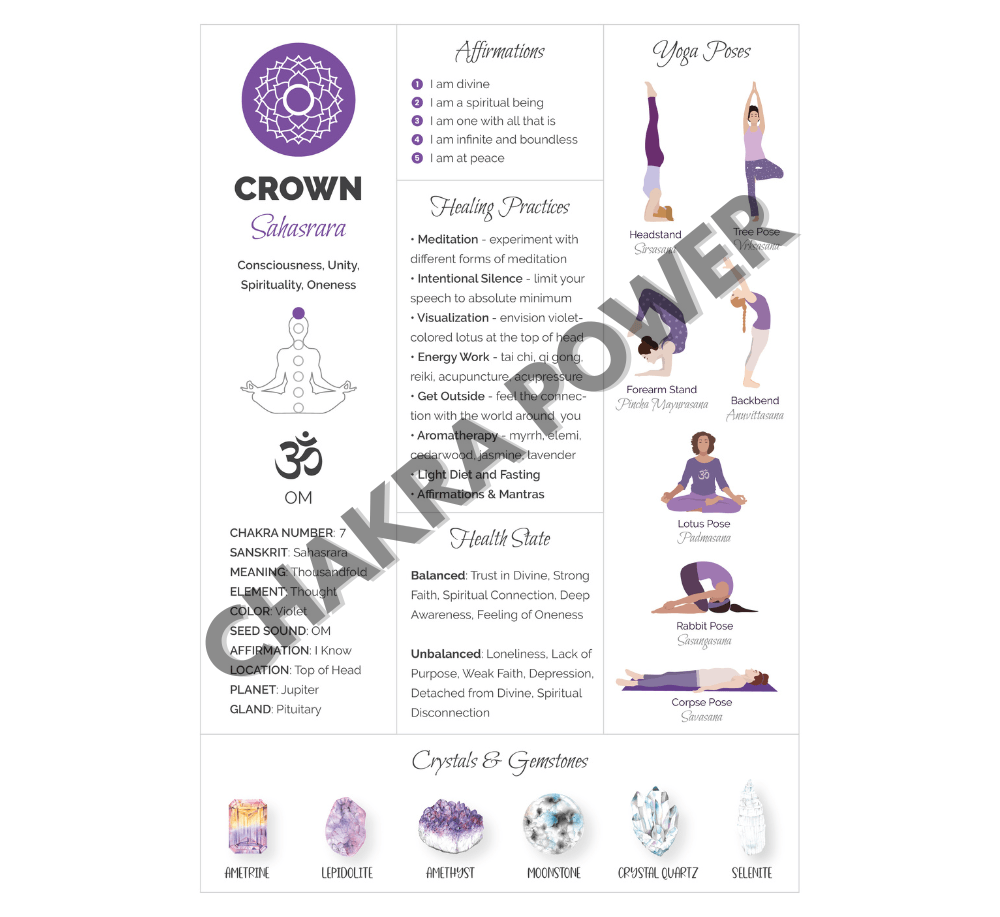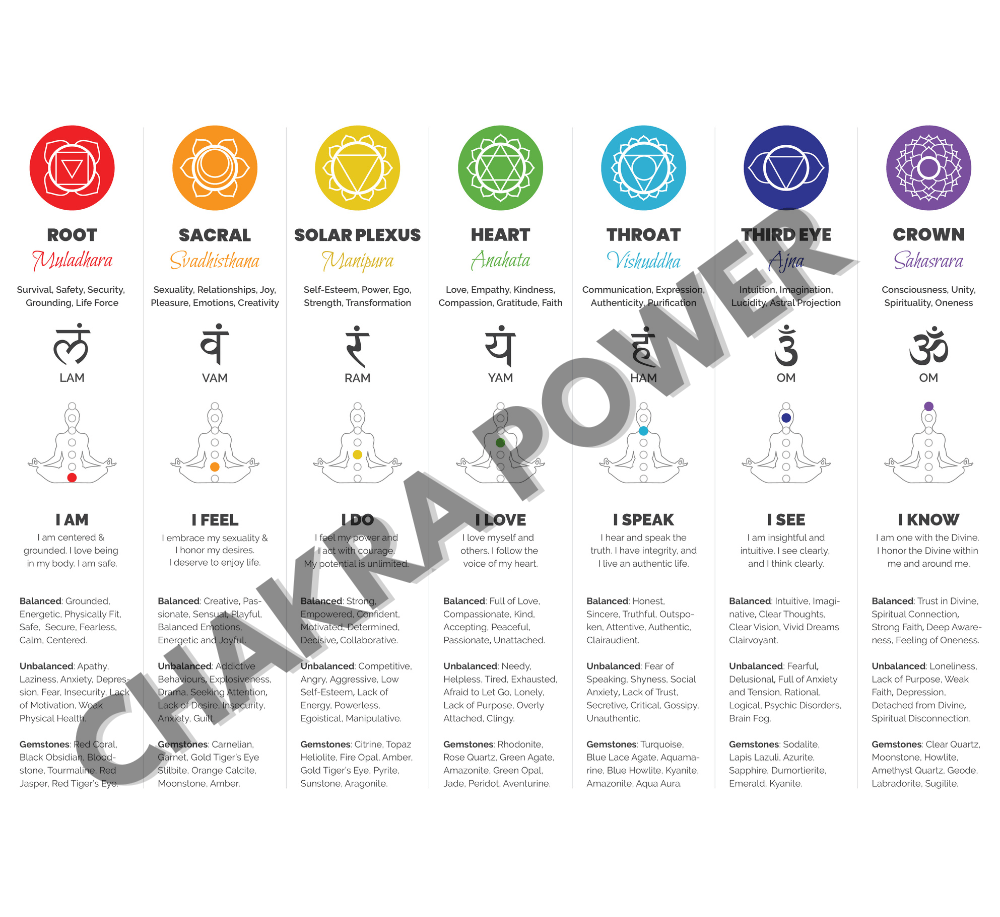 These chakra charts are one of the best ways to learn about Chakras. If you don’t feel like reading long and complicated chakra articles or books, these charts can save you much of your precious time. Chakra charts will quickly increase your knowledge of the seven Chakras, especially if you are a visual learner who prefers to have all information in chronological order. These colourful charts are available for Free as a bonus with your Chakra Power Yoga Mat Bag Today!