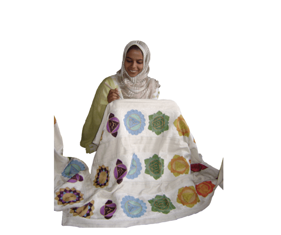 Through the Chakra Healing Project, women focus on learning new skills and getting involved in self-help initiatives whilst preserving traditional skills and creating a beautiful Chakra-inspired collection of products that reflect ancient wisdom while also channelling their own personal healing journeys.