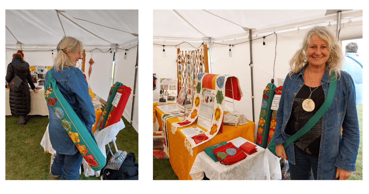 Chakra Power Yoga Mat Bags are 100% handmade and exquisitely hand-stitched with seven Chakra designs to create a harmonious flow of energy by the women of Kashmir who are trained through the Chakra healing project. A grassroots project empowering women in Kashmir in the Himalayan mountains of North India to learn new skills and preserve traditional skills and a whole way of life.